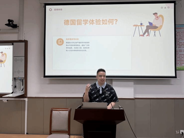 在慎行101教室成功举办了大学生职业规划专题系列讲座。此次讲座特邀请了2022届优秀毕业生刘一楠,就职业规划、行业趋势以及个人留德经验进行分享,2021级全体本科生参加了此次讲座。本次讲座由瓜子tv