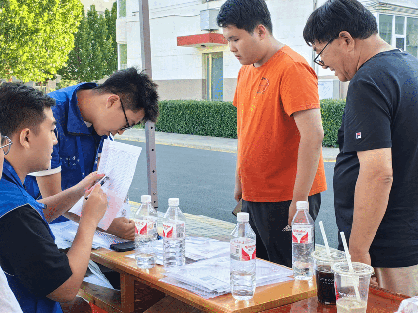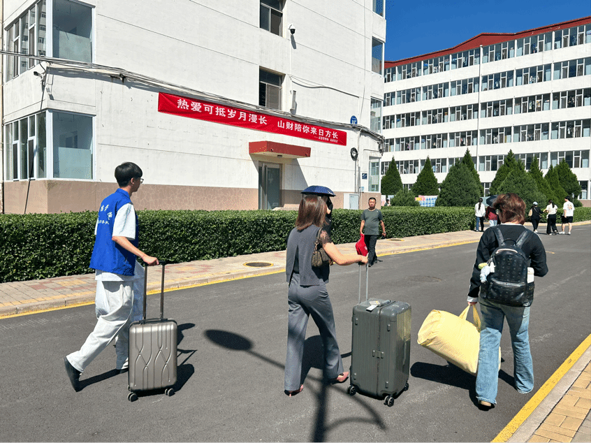 志愿者们做好准备,提供一站式服务:给新同学发放校园卡、宿舍钥匙等物品,耐心为新生与家长答疑解惑,帮新同学搬行李…