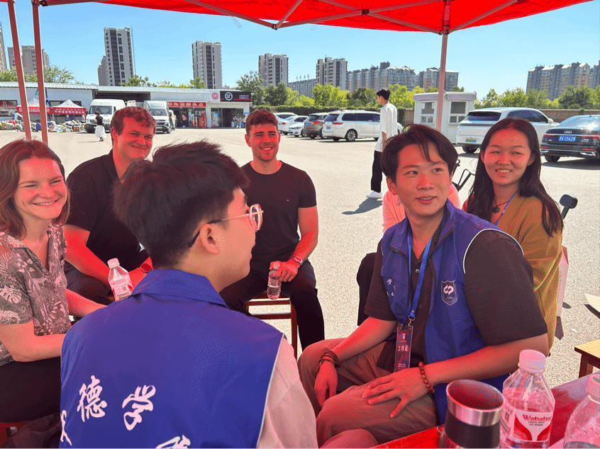德国教授也迫不及待地与新的中德学子见面,积极交流,开心合影。