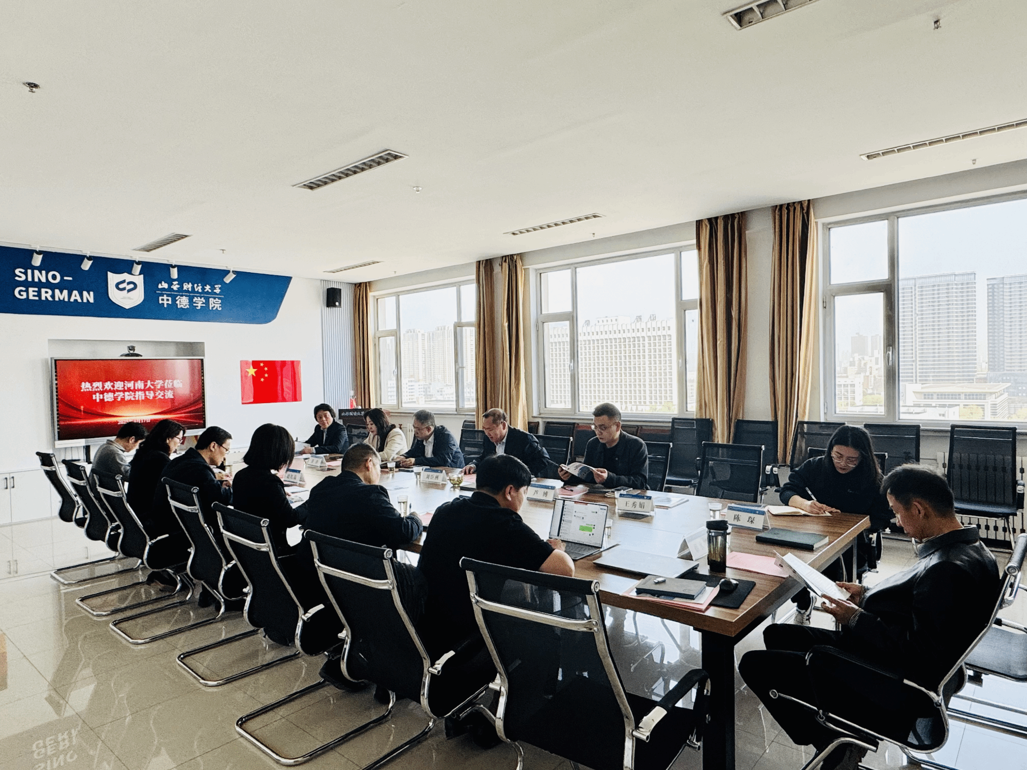 副院长陈啸、王秀娟,办公室主任蔡水军 、德语教师陈琛参加了本次会议。河南大学访问代表团阵容强大,由该校分管国际合作与交流处副处长李秋叶、河南大学本科生院党委副书记赵红磊、河南大学教务处副处长王翔伍、河南大学国际(欧美)理工学院书记赵炎、 河南大学高级金融学院副院长李春涛、河南大学国际(欧美)理工学院副院长崔耀平等一行,期待与瓜子tv