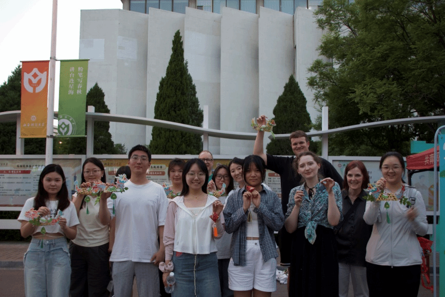 5月19日晚,在三食堂前,师生们亲手制作端午节香囊与五彩绳。装入艾草的香囊散发着传统药香,手工缝制的五彩绳串联起民俗记忆,现场还同步开展纸质龙舟制作,让德国文化元素与端午习俗巧妙结合,不少外教也被吸引参与,体验中国传统手工艺的魅力。
