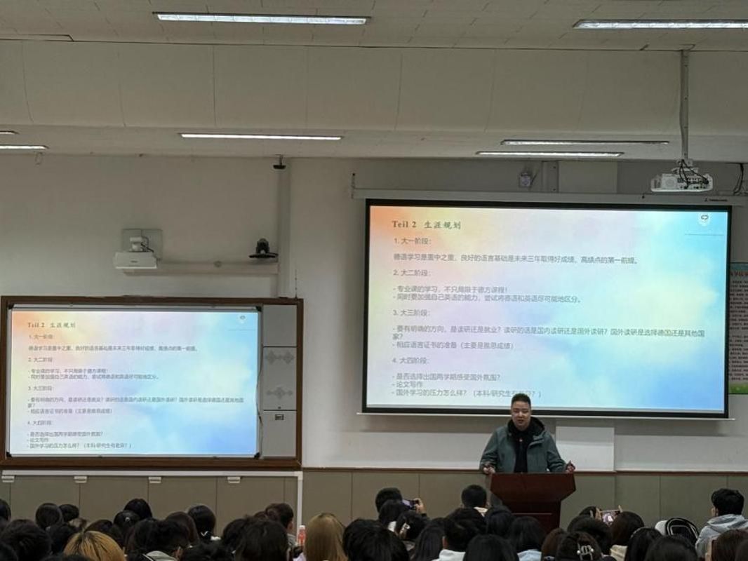 整场讲座历时一个小时,刘一楠以真挚的态度、详实的案例、实用的技巧,为同学们解答了德语学习与德国留学过程中的诸多疑问。深入浅出的讲解、坦诚无私的分享赢得了在场同学阵阵掌声。讲座结束后,同学们纷纷表示,此次分享让自己对德语学习有了更清晰的规划,对德国留学生活有了更全面的认知,收获颇丰、受益匪浅。