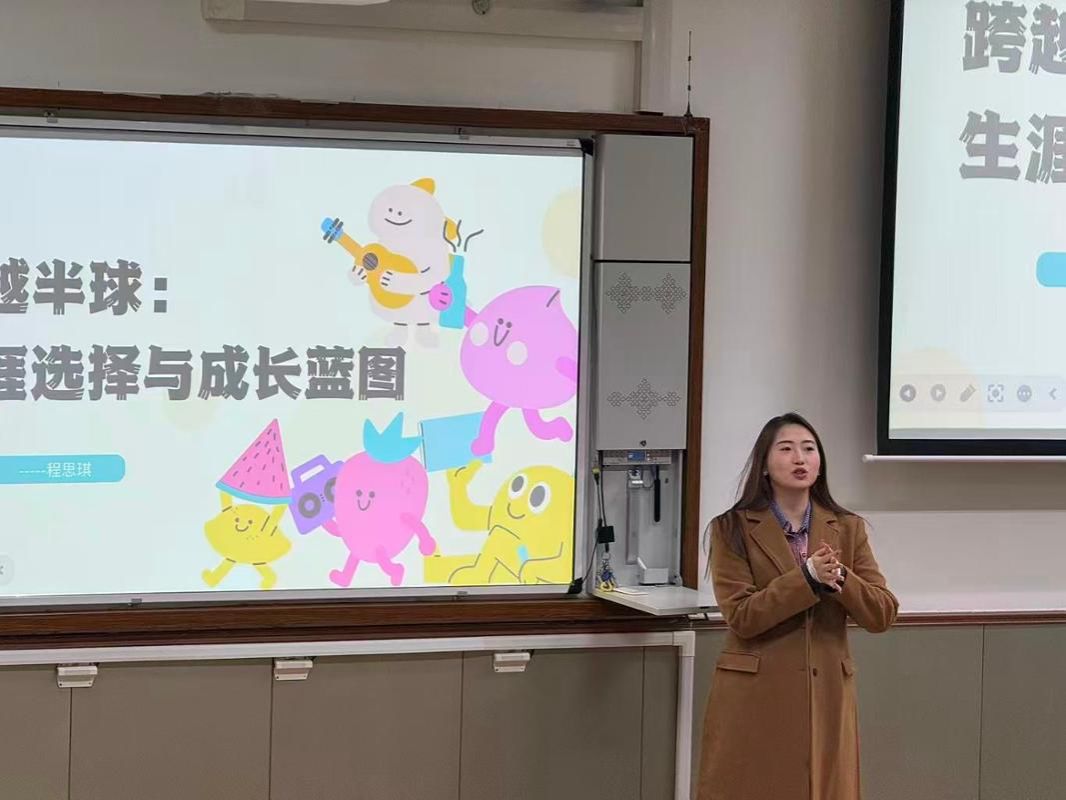 邀请2020级校友、英国布里斯托大学研究生程思琪,在慎行楼101教室举办了一场升学经验分享交流会。2023级与2024级学生积极参与,共同聆听学姐的成长经历与升学心得。