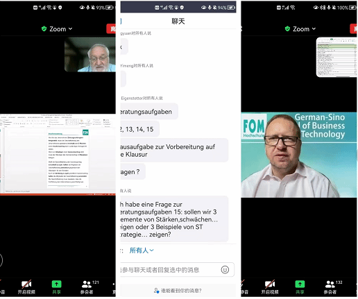 为深入了解教学运行情况,强化教学质量监控,学院领导及教学管理人员通过Webex、Zoom软件登录上课平台,从“云端”走进德国教授的线上课堂,实时查看上课情况,关注学生的学习状态及教师的授课内容,检查指导教学工作。