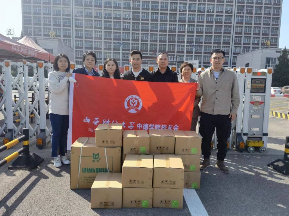 2007级优秀校友郭荣荣为母校捐赠了300瓶矿泉水、2011级优秀校友田晋安为母校捐赠了3000个医用口罩、300瓶免洗手消毒凝胶,为来自四面八方的中德2022级学子提供了爱心资助。