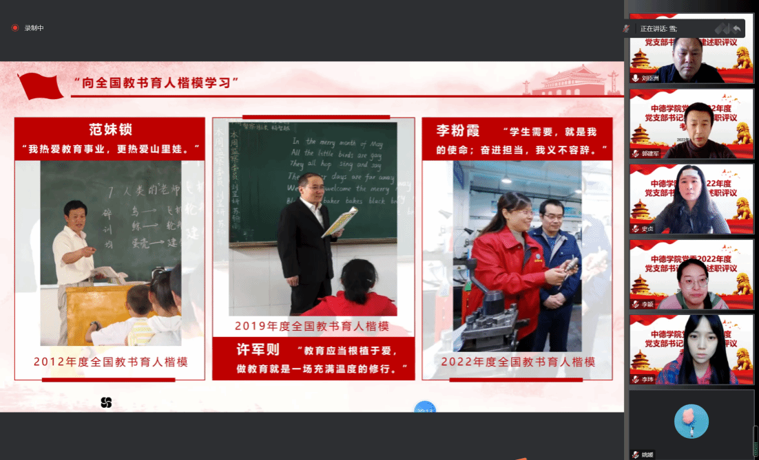 以线上方式开展主题党日活动,组织全体党员教师学习全国教书育人楷模先进事迹。学院党委书记刘臣洲、党委副书记、院长史贞、党委副书记郭建军以及党政支部和学生党支部全体教工党员参加会议。会议由学院党委副书记郭建军主持。