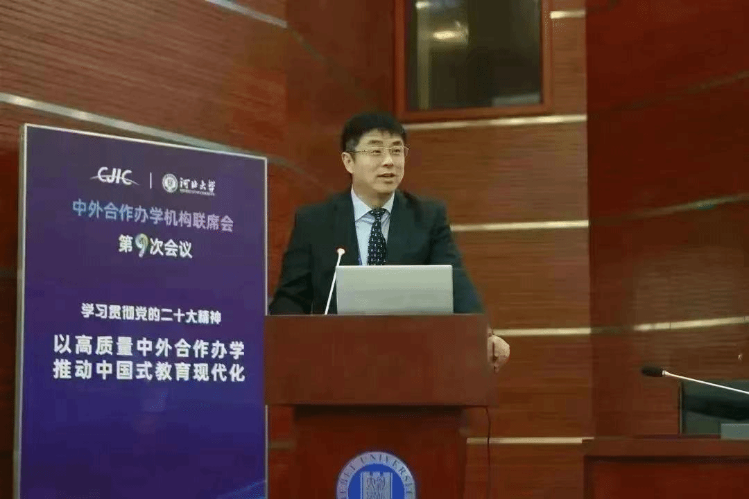 本次联席会开幕式由河北大学党委常委、副校长申世刚主持,河北大学党委书记郭健、河北省教育厅二级巡视员侯建国致欢迎辞。陶洪建巡视员指出,中外合作办学经过几十年的发展,在促进教育改革、创新人才培养模式、服务国家对外开放战略等方面取得了积极的成效。强调在新的发展阶段,中外合作办学要全面加强党的领导,坚持立德树人,不忘办学初心,推进制度创新,促进教育开放,以高质量中外合作办学推动中国式教育现代化。