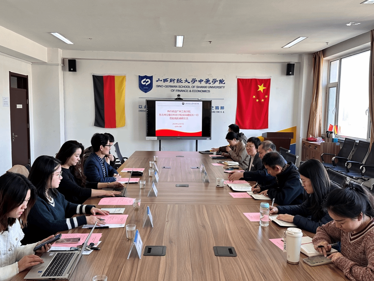 会议室与侯凤雄院长一行围绕中外合作教学模式、语言教学体系构建、招生就业及学生深造、专业拓展渠道、团学活动及学风建设等进行了深入探讨与交流。