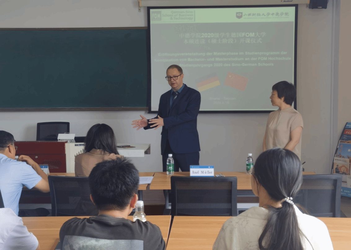 首届FOM大学本硕连读班(硕士阶段)开课仪式在我校坞城校区博学楼812教室举行,党委常委、副校长张卫国出席开课仪式并讲话,FOM大学教学院长Axel Müller、瓜子tv
