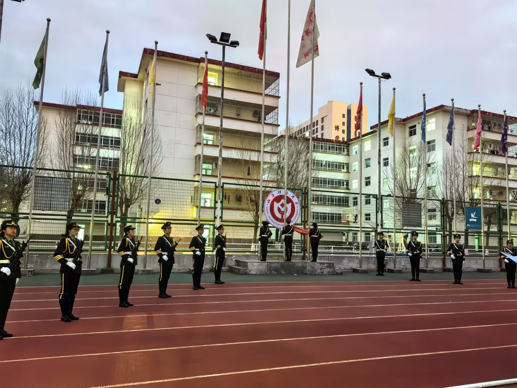 在坞城校区体育场举行了庄严隆重的升旗仪式,学院全体领导、教职工以及所有在校学生共同参加本次升旗仪式。
