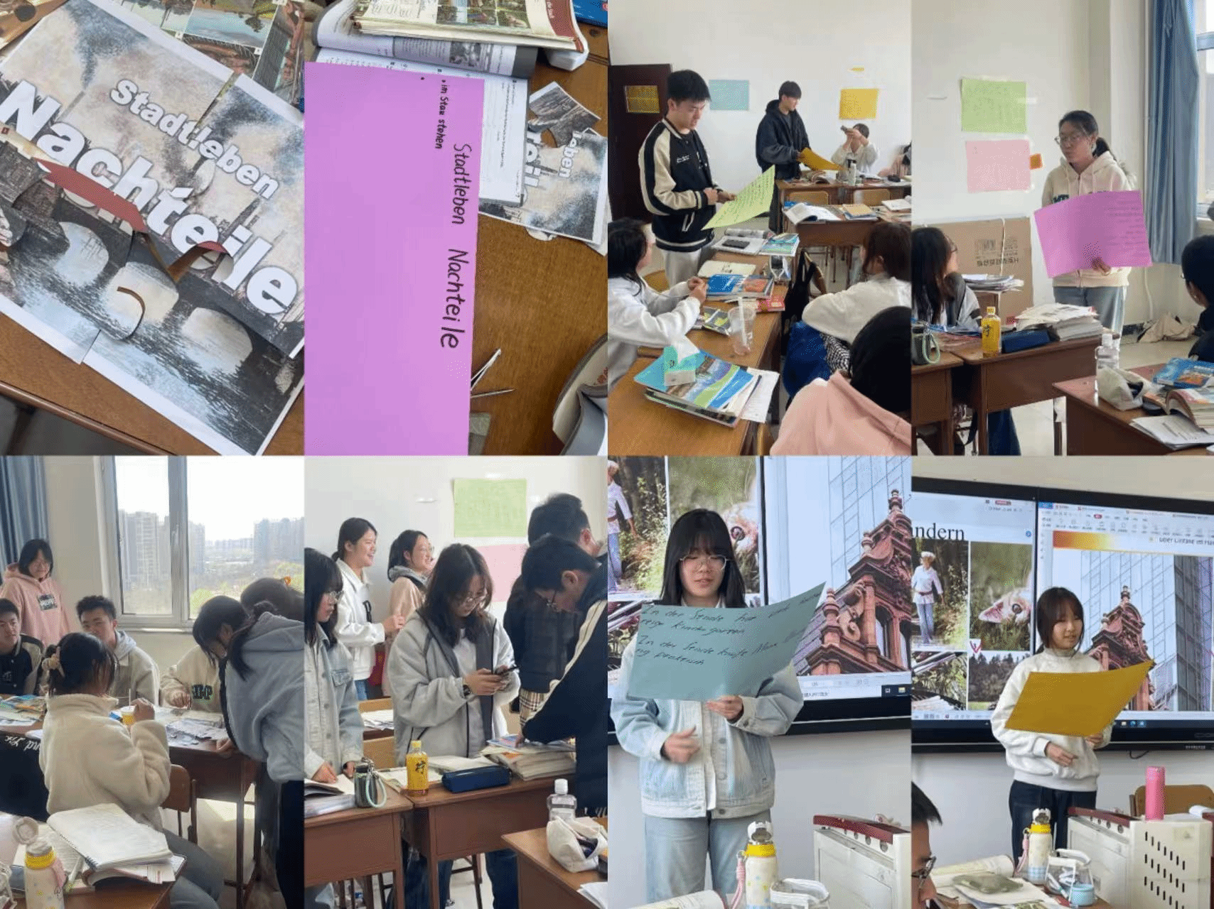 本周的学习内容既包含了逻辑性的表达——讨论和列举城市生活的优缺点,又有非常实用的技能——找房子和搬家。学生在学习的过程中,不仅提高了德语表达能力,也锻炼了逻辑思考能力和小组协作能力。(德语教研室 李冠园供稿)
