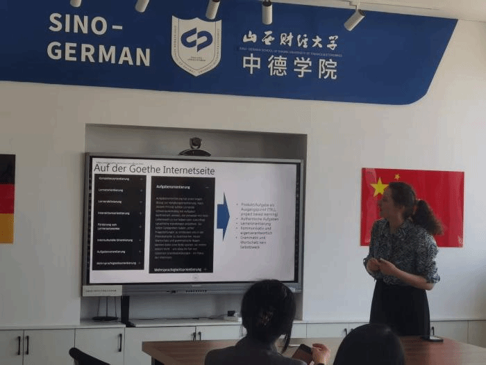2025年4月29日瓜子tv 德语教研室举行了主题为“情境化教学的有效实施”的月度教研活动。此次会议特邀德方外教Frau Agnieszka Sobil进行分享,她以自身教学经验和专业的学术视角,为参会教师提供了多样化的教学指导。