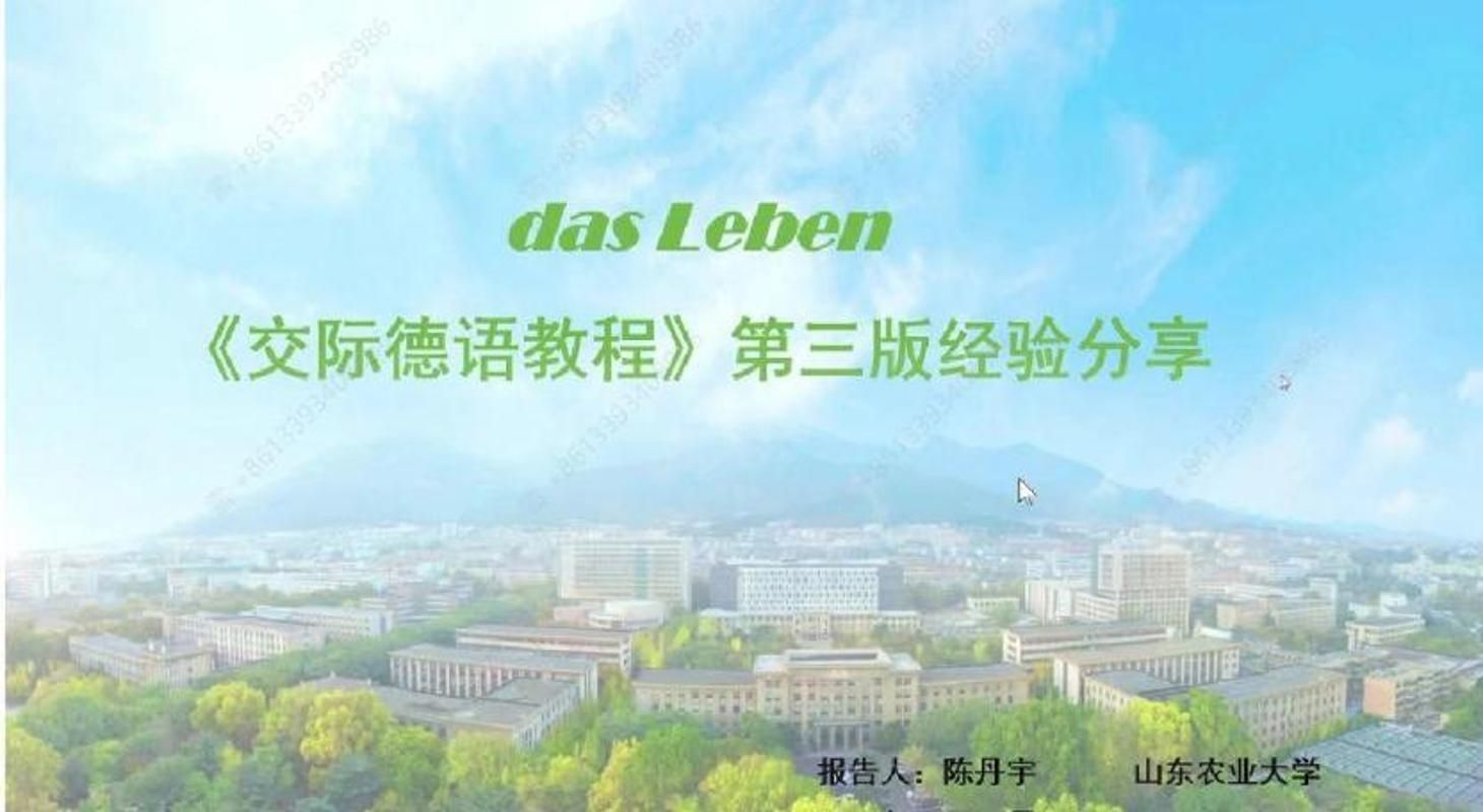 分享会上,陈丹宇老师结合山东农业大学国际交流学院的教学实践经验,围绕《交际德语教程》的教材特点与教学应用展开深入分享。该教材以"交际导向"为核心,具有多模态呈现、高互动性、文化元素丰富等特点,采用大单元螺旋上升设计,每4个单元形成一个学习进阶板块。陈老师指出,教材语法编排虽与传统教材有所不同,但通过提炼核心知识点、搭建语法支架,可有效帮助学生构建语言体系。