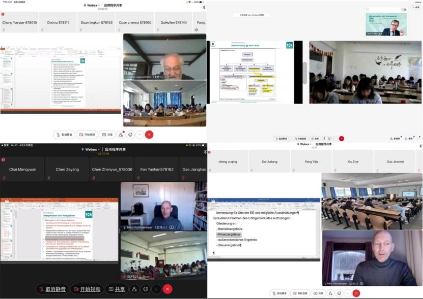 本周开课共计7门次,23名中德方教师、助教依托中国大学MOOC、山西省高校精品共享课程联盟、超星尔雅及学银在线平台、智慧树网等各类在线课程平台,遴选符合我校教学实际的国家精品在线课程或优质慕课等网络线上资源,使用超星学习通、钉钉、腾讯会议、Webex、Zoom等多种平台开展教学活动。线上教学对教师的授课技能和灵活应变能力提出了更高的要求。任课教师从课前指导到线上教学再到课后作业布置、批阅等环节,充分利用网络平台,线上线下联动,稳定教学秩序,创新教学模式,保障教学质量。在师生的共同努力下,“云端”教学工作运行平稳,让“教”与“学”在线上线下擦出了火花。