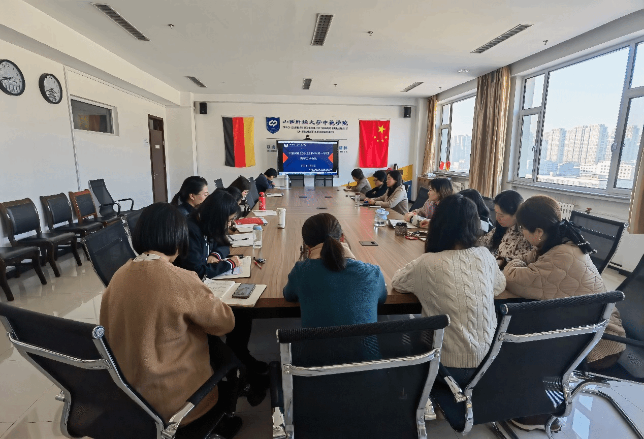 院长史贞、副院长陈啸、王秀娟、教学秘书及全体德语教师参加了会议,副院长陈啸主持会议。