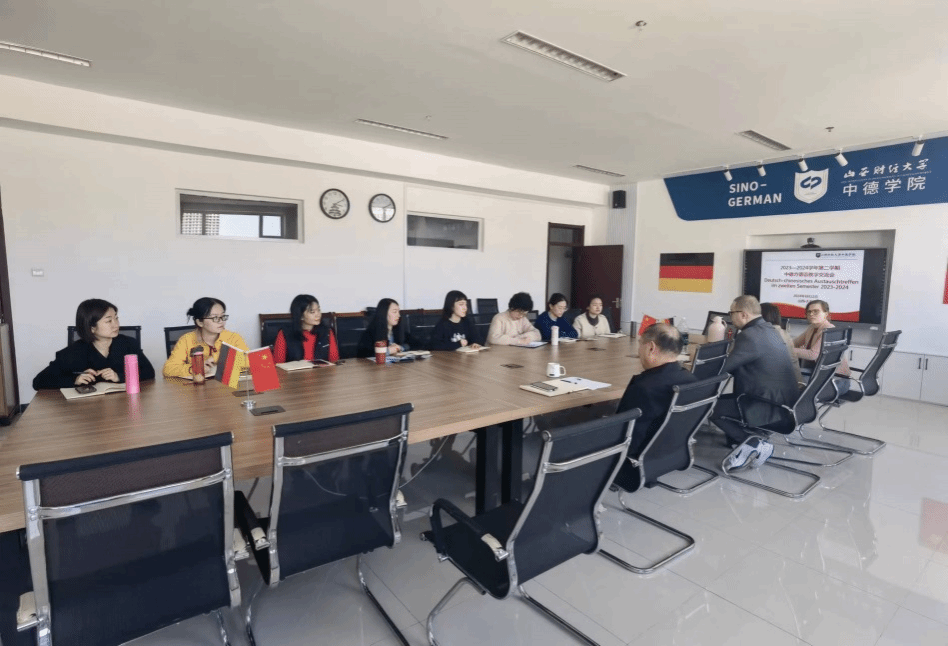 召开了本学期中德方德语教研交流会。学院书记刘臣洲,副院长陈啸、王秀娟,德方教务主任Axel Müller教授与德语老师参加了此次德语教学研讨会。