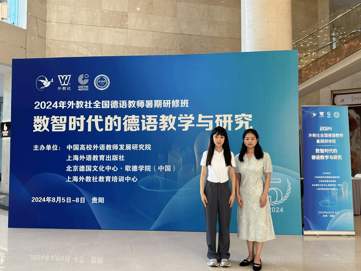 2024年8月5日至8月8日,2024年外教社全国德语教师暑期研修班在贵阳举办,此次研修班由中国高校外语教师发展研究院、上海外语教育出版社、北京德国文化中心·歌德学院(中国)及上海外教社教育培训中心共同主办的,以“数智时代的德语教学与研究”为主题,邀请中德两国的外语专家学者以及教育技术领域的专家,与全国高校及中学德语教师共同研讨德语课程建设与教学设计、德语教学资源的共建共享、人工智能在德语教学和科研中的应用等主题,赋能德全国德语教师发展。瓜子tv 德语教研室的李玮、王萌莎两位老师作为教师代表参加了此次研修班并获得培训证书。