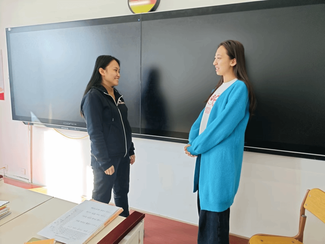 本周的德语课程内容丰富多彩,涵盖了德语字母的认读、元音拼读规则及日常对话实践。我从与英语字母的对比入手,借助生动有趣的字母图片,帮助学生迅速掌握了德语字母的正确发音。随后,在元音拼读环节,我巧妙地运用了拼音作为桥梁,利用学生已有的知识基础,降低了学习新知识的难度,为他们铺设了一条更加顺畅的学习路径。最令学生们兴奋不已的是日常对话的学习部分。在掌握了基本的单词拼读规则后,学生们迫不及待地想要将所学知识应用于实践中。他们积极尝试拼读句子,用德语进行自我介绍,并与同学进行简单的日常交流。这种积极的学习态度和热情不仅促进了语言技能的提升,还增强了学生们之间的互动与合作,为他们的德语学习之旅增添了无限乐趣。