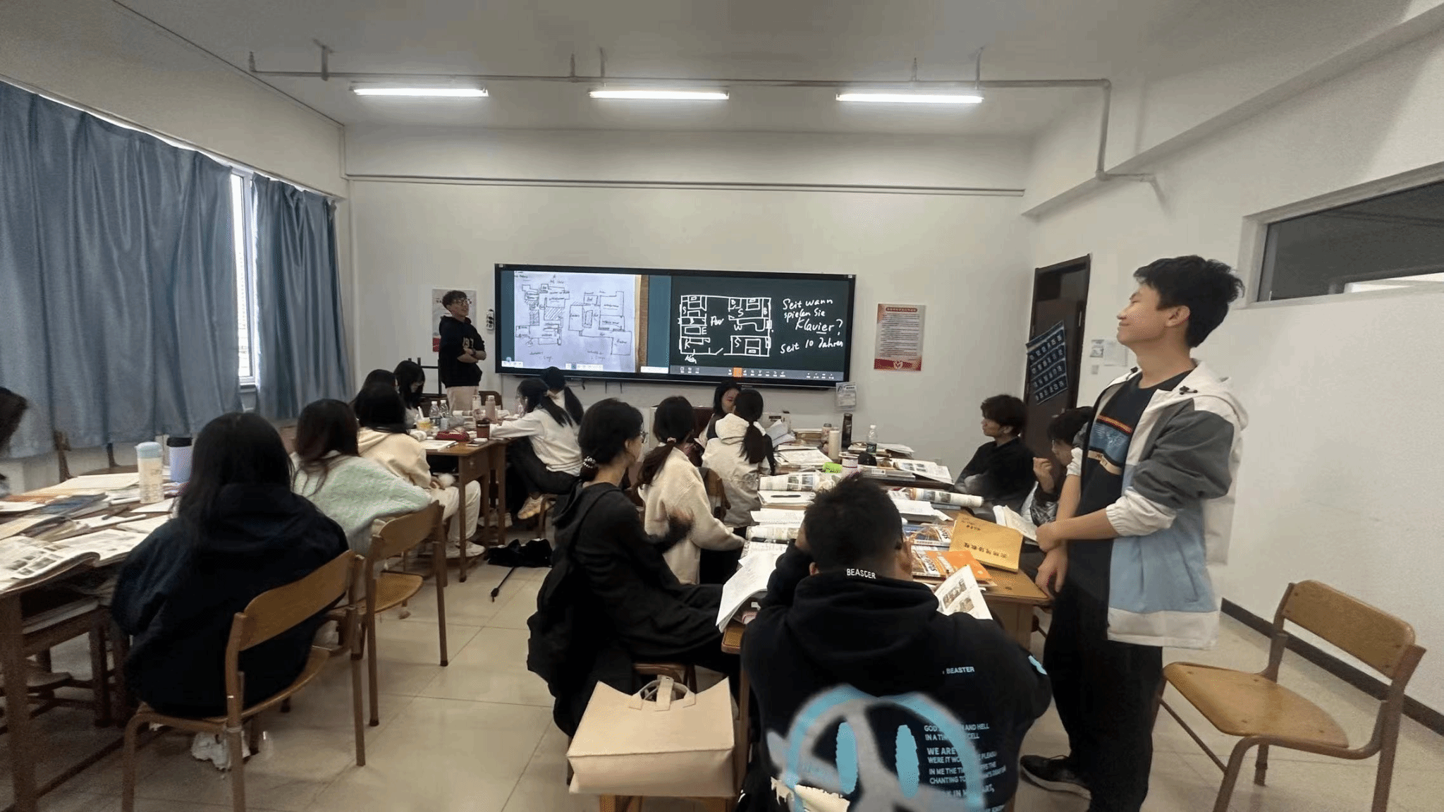 在接下来的环节中,为了激发学生的学习热情和培养他们的综合能力,我们组织了小组展示活动。大家全身心地投入到对所喜爱居住形式的研究中。在展示环节,有的小组用精美的幻灯片展示巴伐利亚独栋房屋的建筑细节;有的小组通过角色扮演,生动演绎柏林公寓居民一天的便捷生活;还有的小组以幽默风趣的方式讲述汉堡合租屋中的跨国友情故事。整个过程中,学生们不仅提升了团队协作和表达能力,更从多个维度领略了德国居住形式的独特魅力。