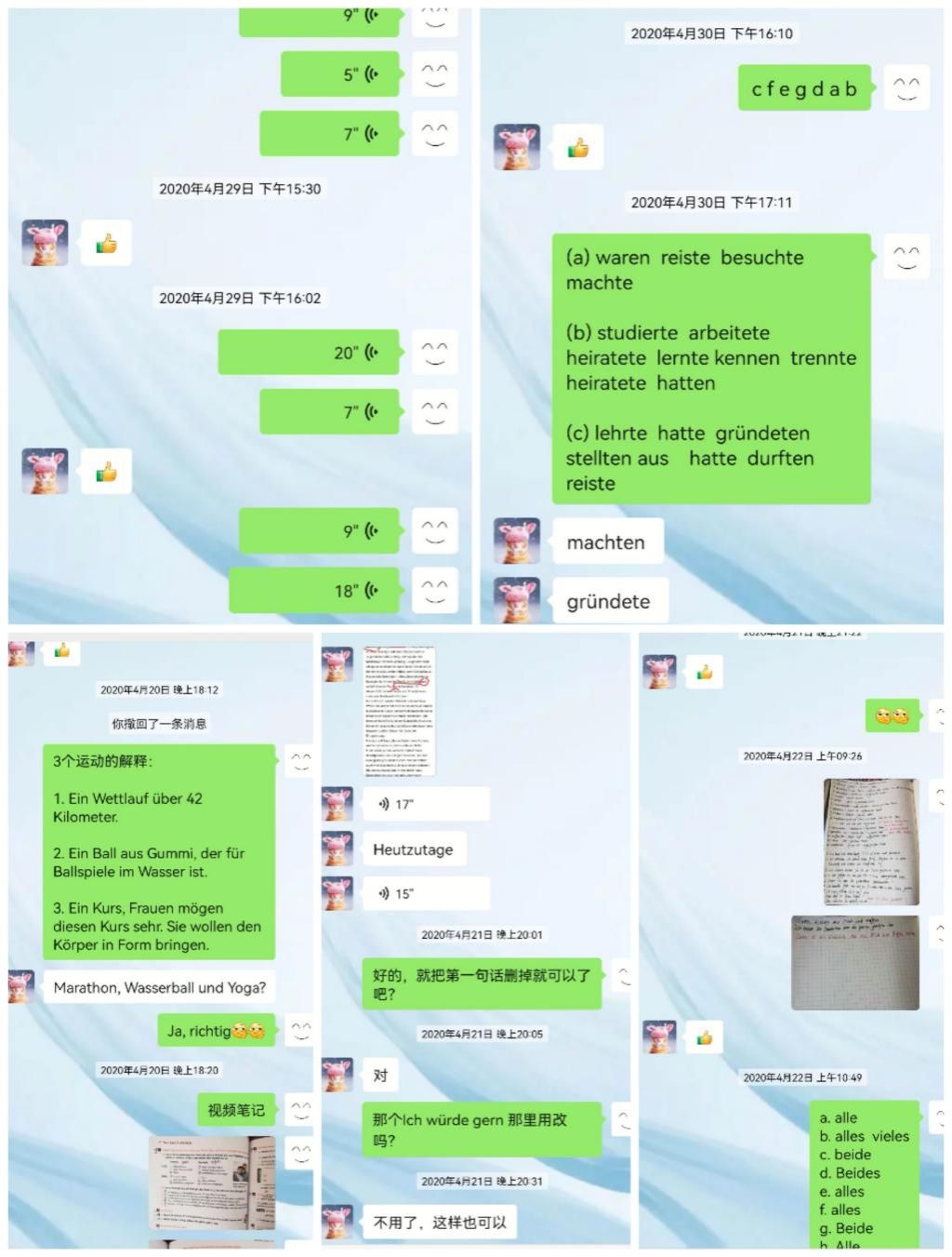 (大一网课期间和德语老师线上互动)