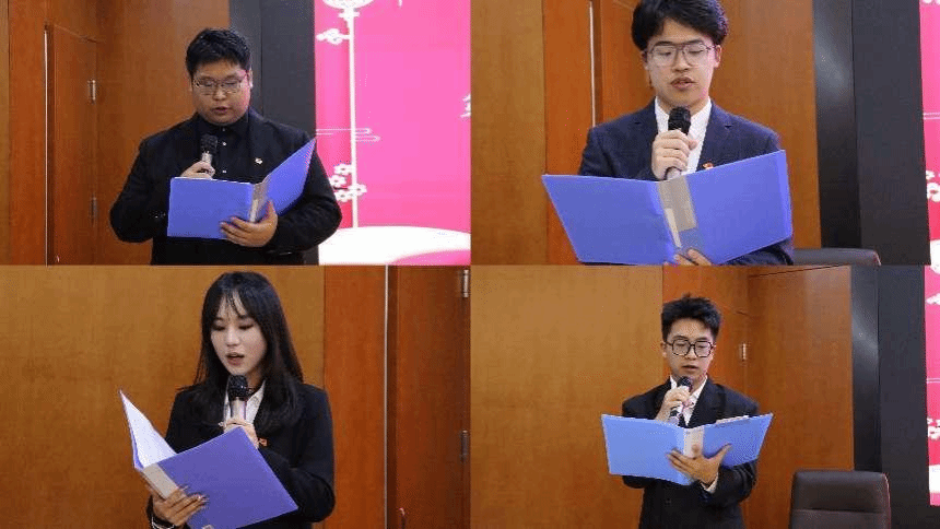 第十八届学生会主席团代表柴昱坤,新一届团委副书记代表吴思雨、学生会主席团代表焦子烨、学生权益委员会主任邓树航在发言中指出,作为学生干部,不仅要学习技能、专业知识,还要主动思考,及时反思工作,汲取经验。更要以身作则,加强责任意识,积极投身于学院各项工作之中。他们表示一齐奋斗,星星之火亦可燎原,将会共同努力为中德学生工作做出自己的贡献。