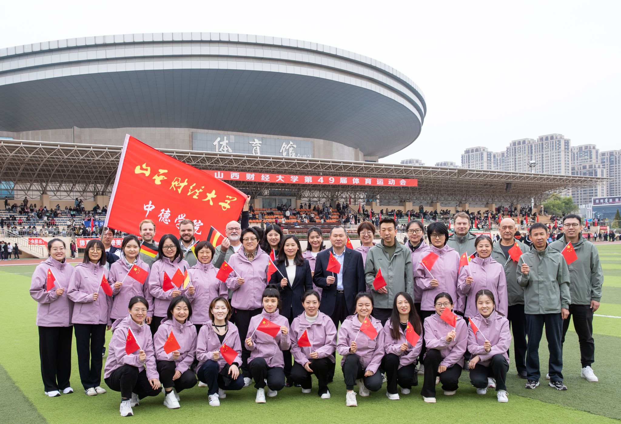 全体领导、教师和学生代表组成的方阵,昂首阔步、意气风发。在鲜艳的五星红旗下,同学们感受着强大祖国赋予青年自信自强的底气。他们手握中德两国国旗,“以海纳百川之胸怀、融中西文化之精粹”,中德文化的交融让中德学子们拥有更加开阔的眼界和胸怀。