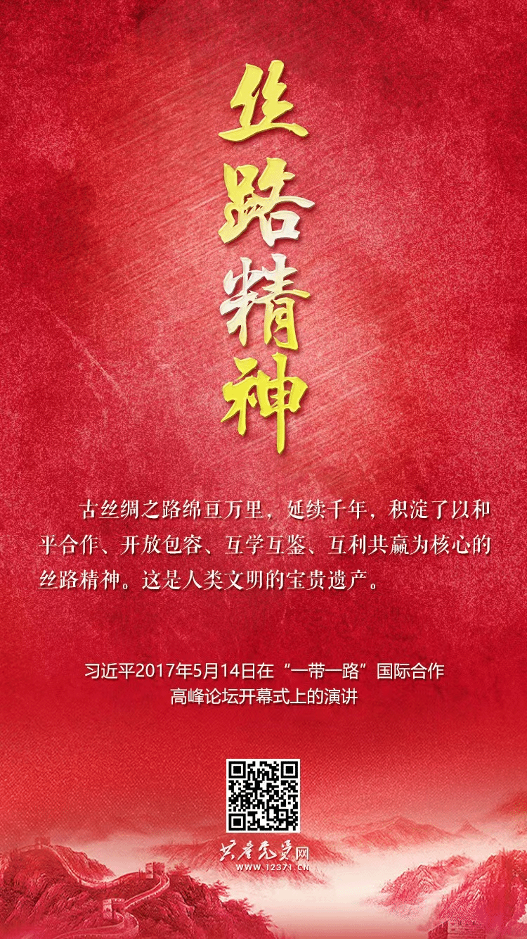 丝路精神起源于丝绸之路的开辟,它不仅仅是商业通道,更重要的是丝绸之路体现的“丝路精神”。丝绸之路作为人文社会的交往平台,多民族、多种族、多宗教、多文化在此交汇融合,在长期交往过程中各个国家之间形成了“团结互信、平等互利、包容互鉴、合作共赢,不同种族、不同信仰、不同文化背景的国家可以共享和平,共同发展”的丝路精神。